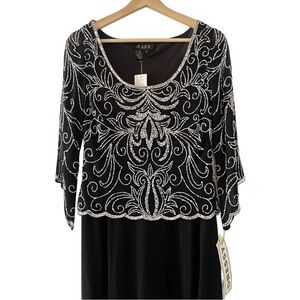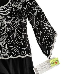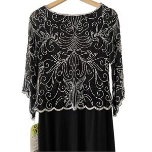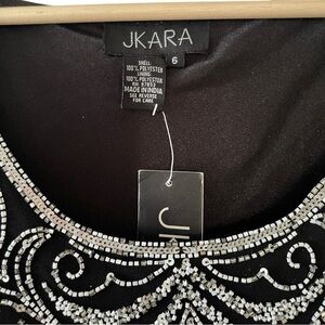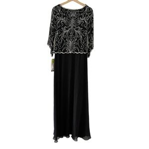 NEW J Kara Black Long Gown Sequin Beaded Bodice Chiffon Formal Elegant Dress 6