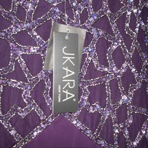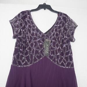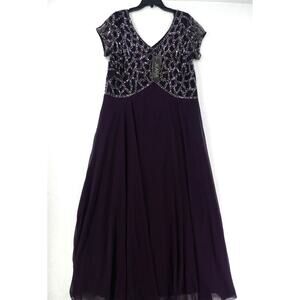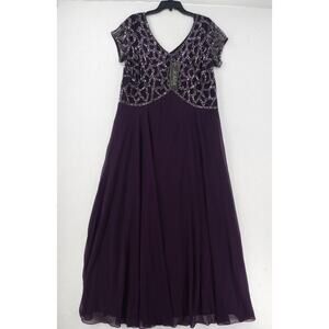 NEW J Kara Women's 14 W Sort Sleeve Geo Long Beaded Formal Gown Plum Purple