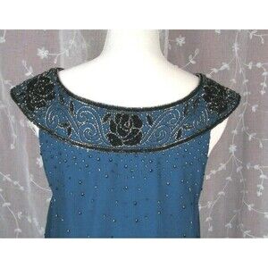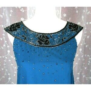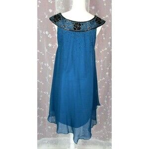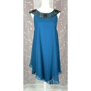NEW J Kara Womens Sheath Dress TEAL Size 6 Beaded Sheer & Silky Sleeveless