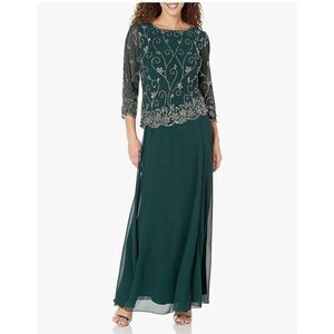 NEW J Kara Petite Beaded Scallop Bodice Asymmetrical Gown 8P