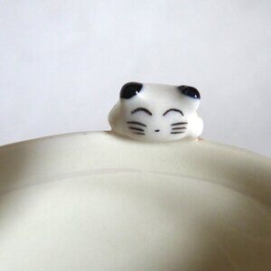 New, never used for its purpose, Japanese, (Made in Japan), Kotobuki brand, white porcelain, dish / bowl, with a cat hanging on the lip looking at a painted fish on the inside bottom. (See photos for details) I am the original owner. It has been in climate controlled storage for decades. Comes from a pet and smoke free home.