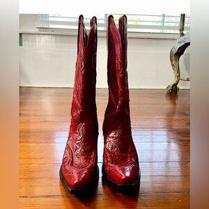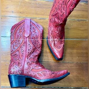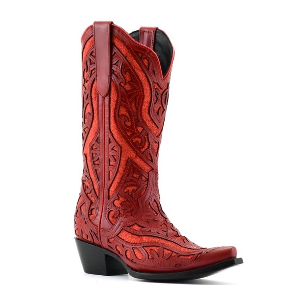 NEW JB DILLON RESERVE Darling Red Glitter Inlay Leather Snip Toe Boot GIFTABLE-8