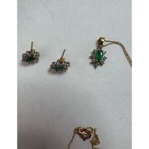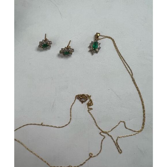 NEW JB Robinson 10K Gold Diamond and Emerald Necklace and Stud Prcd Earrings