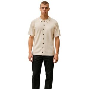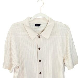 Modern vintage feel in this sze M NWOT ribbed sweater polo from J.CREW FACTORY. Made from 100% cotton with a soft, structured ribbed knit. Features a full button front, open collar, short sleeves, and neutral cream color for effortless styling. Lightweight and breathable—perfect for spring through early fall.