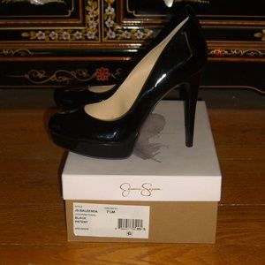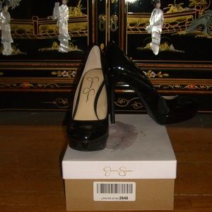 NEW JESSICA SIMPSON BALEENDA BLACK PATENT PLATFORM PUMPS SHOES 7.5M