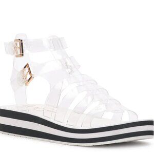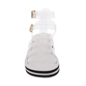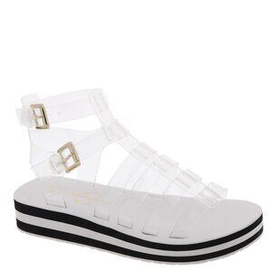 Amplify your casual style with the Bimala platform sandal from Jessica Simpson. See-through straps with dual buckle closures and a vibrant platform define this gladiator sandal grounded by a grippy rubber sole.