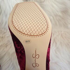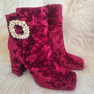 NEW JESSICA SIMPSON Embellished Buckle Crushed Velvet Block-Heel Booties Size 8
