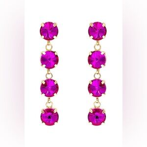 NEW JEWELRY ARRIVAL FOUR RHINESTONE DROP DANGLING EARRINGS-FUCHSIA
