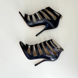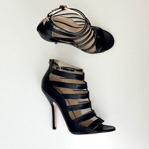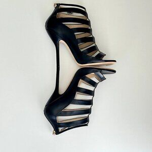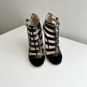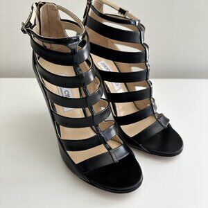 NEW JIMMY CHOO Black Leather Caged Ankle Strap Sandals!