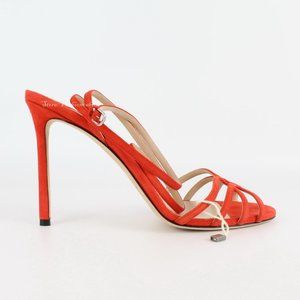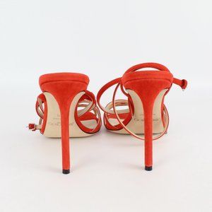 Crafted in Italy from Chilli suede, these Mimi 100 sandals from Jimmy Choo feature a peep toe, a strappy design, an ankle strap with a side buckle fastening, a branded insole and a high stiletto heel.