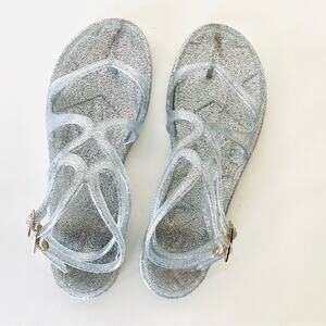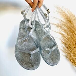 NEW JIMMY CHOO Lance Jelly Gladiator Silver Sparkle Double Strap Sandals 40 10