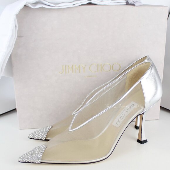 NEW JIMMY CHOO Nicole 90mm Silver Mesh Crystal Pumps - Heel for Weddings, Events