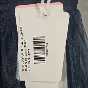 NEW JJ's House Sz 12 Formal Dress Handkercheif Hem Full Tulle Skirt Navy Blue