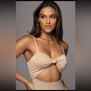 NEW JLUXLABEL Beige Midnight Memories Fitted Knot Cut Out Midi Dress