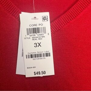 NEW JM Collection V Neck Pullover Knit Sweater Red Size 3X