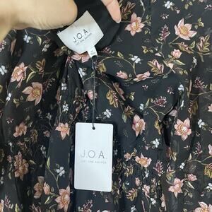 NEW! J.O.A. Black Floral Back Cut Out Smocked Waist Asymmetrical Dress Med