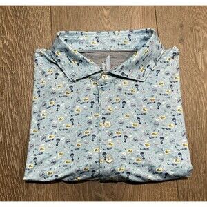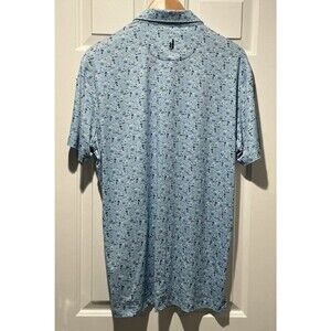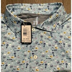 NEW JOHNNIE O Featherweight Golf Polo Blue Air Mail Print Size Medium MSRP $110