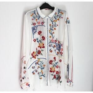 NEW JOHNNY WAS Zodea Almeria Embroidered Blouse, Size XL