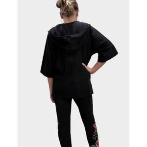 NEW JOHNNY WAS cora hooded short sleeve sweatshirt in black