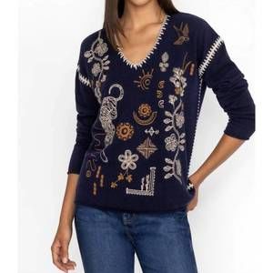 NEW JOHNNY WAS jenai whipstitch v-neck pullover in navy