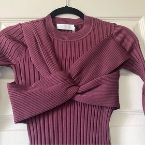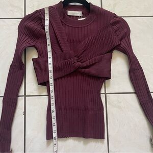 NEW JONATHAN SIMKHAI Nolan Top Twist Bow Long Sleeve Wine Merlot Size S