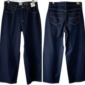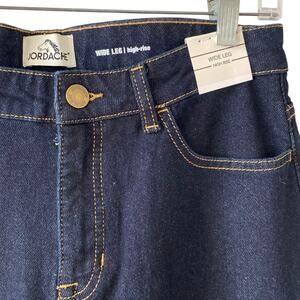 NEW JORDACHE High Rise Wide Leg Denim Jeans Size 8 Dark Blue Wash Stretch Belt Loops Zip & Button Closure Pockets Trendy Boho Bohemian Casual Basic Essential Staple