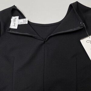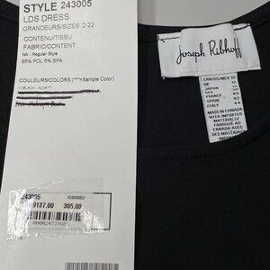 Brand new with tags, this Joseph Ribkoff sheath dress in classic black is the epitome of refined sophistication. The tailored silhouette, knee-length cut, and tasteful side slit make it a timeless wardrobe essential perfect for work, formal events, or elegant evenings out.