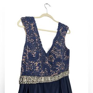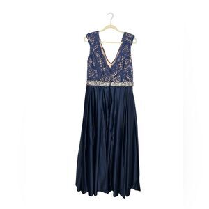 NEW JOVANI Rhinestone Lace Gown Maxi Dress in navy blue