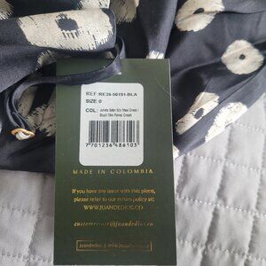 NWT JUAN DE DIOS Julieta Silk Maxi Dress in Black/Cream Palm Print – Women’s Size 0. This exquisite designer dress is crafted from luxurious silk with a bold palm print that captures effortless elegance. Featuring a flowing maxi silhouette and refined detailing, it’s the perfect choice for resort wear, destination weddings, or elevated evening events. A timeless, statement-making piece that blends sophistication with tropical charm.