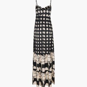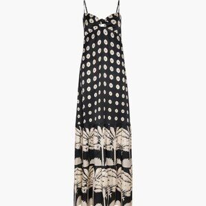 NEW JUAN DE DIOS Julieta Silk Maxi Dress Black/Cream With Palm Print Size 0