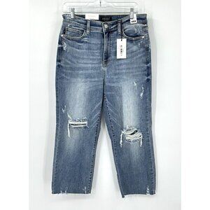 NEW JUDY BLUE CELESTE jeans high rise wide leg distressed crop blue denim 11/30