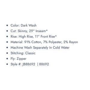 NEW JUDY BLUE DOVER HIGH RISE TUMMY CONTROL TOP SKINNY 9/29