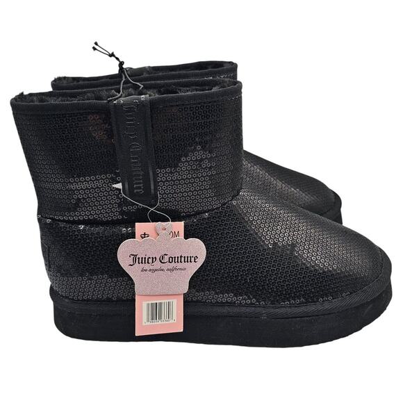 NEW JUICY COUTURE Oclock Sequin Sparkly Ankle Boots, Black (Size 10M)