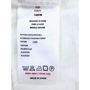 Description: This is a genuine Girls' Jacadi Paris White Denim Mini Skirt. No rips, tears, marks, stains, flaws or defects. NO damages. The skirt features front zip with button closure, front hand pockets, belt loops with button detail, stitching detail on bottom and front pockets, waist adjustable from the inside with elastic, soft cotton fabric, machine washable, imported. Retail $95