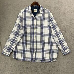 NEW Jachs Girlfriend Women's XXL Biue & White Plaid Button-Down Shirt