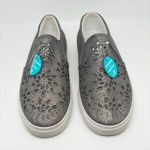NEW Jack Rogers Violet Perforated Slip on Sneakers in Metallic Charcoal Size 7