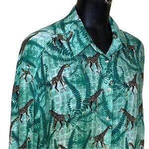 NEW Jane + Delancey Green Leaf and Giraffe Print Tunic Top, button down, long sleeve,