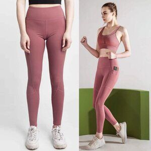 NEW Janice Active High Waist Side Pockets Full Length Leggings Dark Mauve Pink M