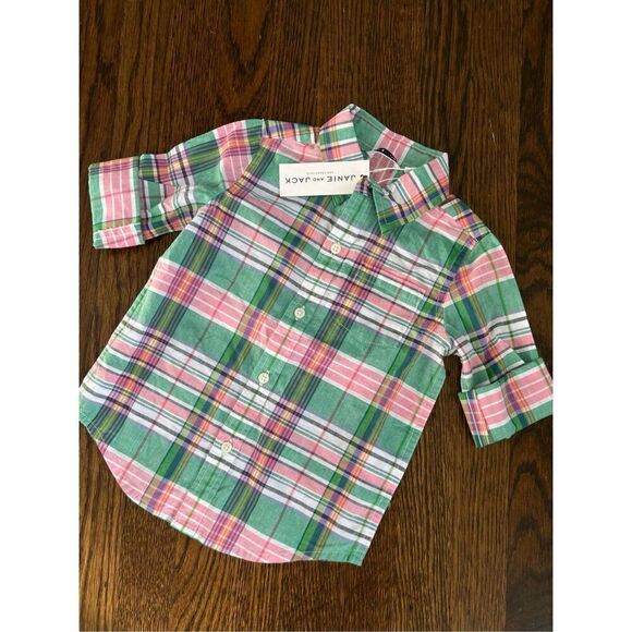 NEW Janie and Jack Kids Toddler 4/5 Madras Button Doen Shirt