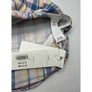 Dress up your little one in style with the Janie and Jack Plaid Newsboy Hat, a charming accessory that's as versatile as it is adorable. The hat features a delightful multicolored plaid pattern that easily complements a variety of outfits, making it a great choice for both casual and more formal occasions. Crafted for comfort and durability, this newsboy cap is made from a soft blended fabric and is thoughtfully lined for extra protection. With a size suitable for 6-12 months and an adjustable buckle for a perfect fit, it's an ideal choice for any event, from parties to family gatherings, or even adding a touch of sophistication to your child's Easter ensemble.