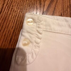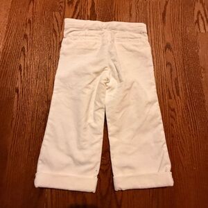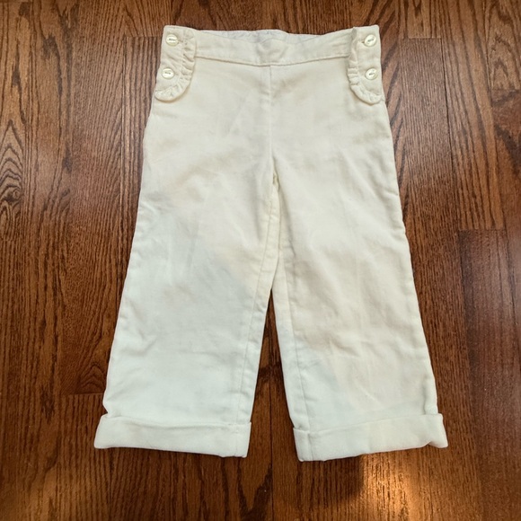 New with tags white wide leg velour pants. Rolled cuffs. Ruffle and button accent on both sides of pants. Adjustable waist. 100% cotton. So sweet!