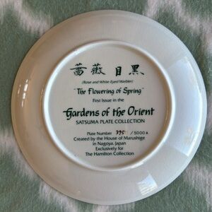 Beautiful plate from the Satsuma plate collection Gardens of the Orient, called The Flowering of Spring. Made in Nagoya Japan for the Hamilton Collection. NEW never used or displayed. 7.5” diameter.