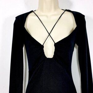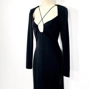 NEW Jason Wu Black Midi Dress Sz XS Low Back Crisscross Plunge Fairy Goth Witchy
