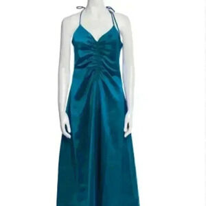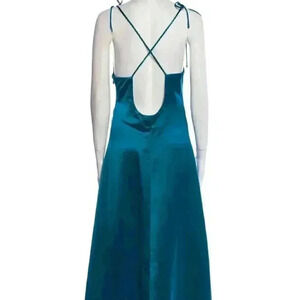 NEW Jason Wu Turquoise Satin Low Back Halter A-Line Dress Women’s Sz Medium NWT