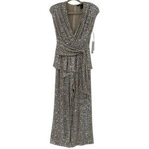 NEW Jay Godfrey Susie Sequin Jumpsuit size 6 Silver