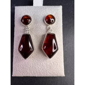 Genuine cognac amber from Poland set in authentic 925 sterling silver by Jay King designer. Likely for HSN. 925 stamp on posts. Not signed.