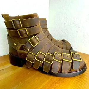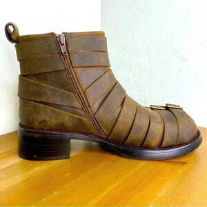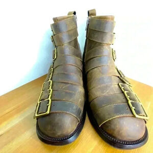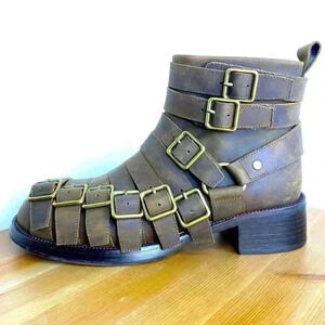 NEW Jeffery Campbell Belted Up Moto Inspired Brown Leather Boot Women’s 9.5