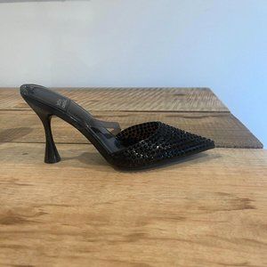 NEW Jeffrey Campbell Heiress Black Crystal Heel w/ Clear Strap Size 8.5
