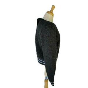 Stay warm and stylish with this NEW with Tags Jenni by Jennifer Moore Intimates Cropped Pajama Top. Crafted from soft faux sherpa fabric, this cozy black top features long sleeves, a scoop neckline, and striped ribbing at the cuffs and hem. Perfect for lounging or a good night's sleep. Size: Small. Machine washable for easy care.