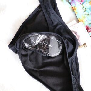 NEW Jessica Simpson Blue Black Floral Print Bikini Bathing Suit Set Size Small